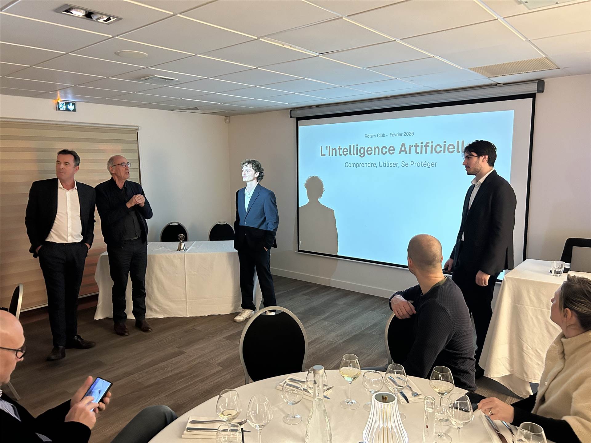 Un constat , l'IA est partout, elle touche tous les métiers, elle crée de nouveaux risques. Après une définition de l'IA , ce qu'elle est et ce qu'elle n'est pas , les deux jeunes conférenciers à l'initiative d'une start up, nous ont présenté les trois niveaux de l'IA, l'IA générative, l'IA intermodale, l'IA argentique . L'IA sauve des vies, elle est dans la vie de tous les jours. Il n'en reste pas moins que l'IA pose un certain nombre de défis éthiques sans parler de la cybersécurité, le côté obscur de l'IA avec cette conclusion , peu importe ce qu'on imagine, l'IA arrivera, elle créera un nouveau monde .