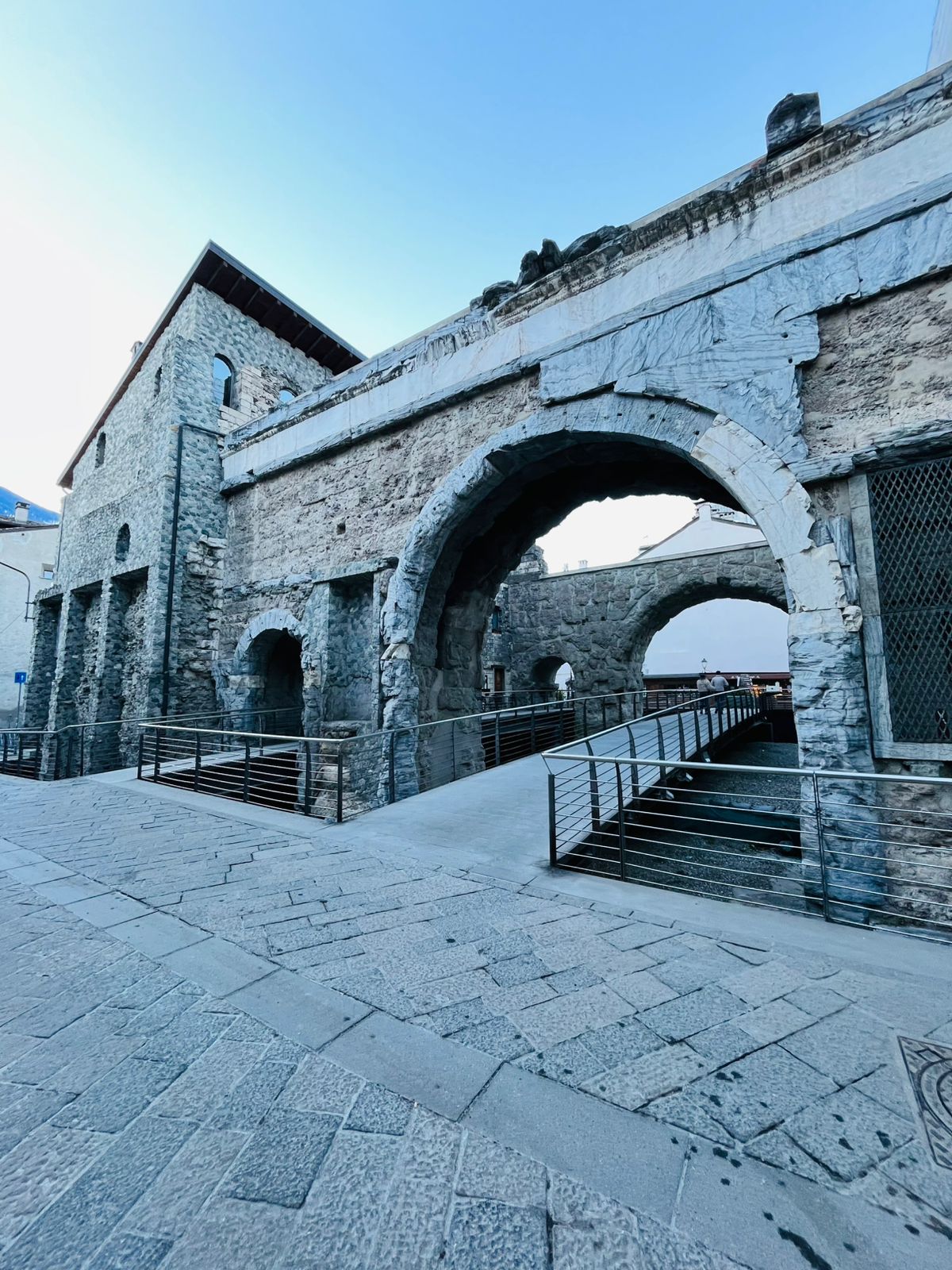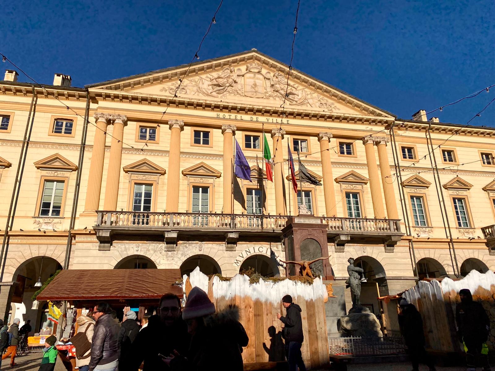 La ville d'Aoste garde des traces de l'époque Romaine, du Moyen Âge, de la seconde guerre mondiale et le rattachement au Royaume d'italie en 1861. La vallée d'Aoste obtient un statut d'autonomie spéciale, inscrit en 1948 dans la République italienne, qui garantit son bilinguisme officiel français-italien; ceci explique que les 2 langues sont présentes partout dans la ville.