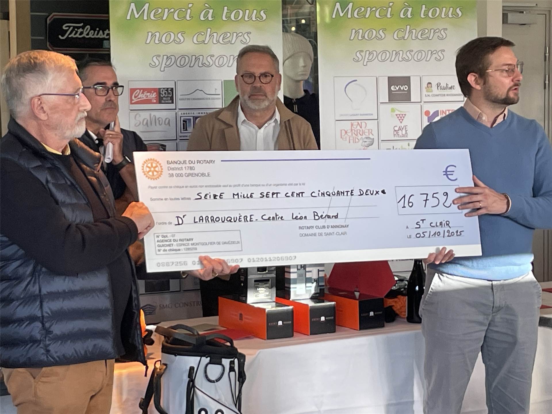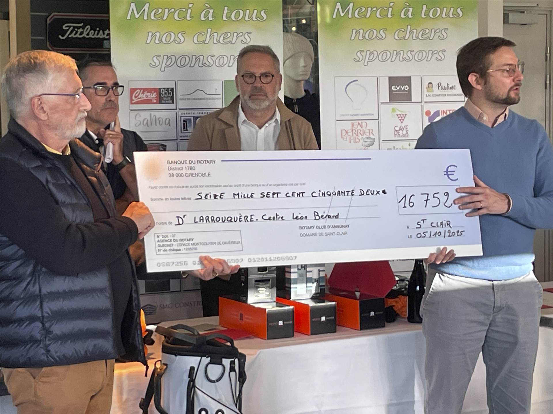 Cette journée s’est terminée par la remise des prix aux concurrents et d’un chèque de 16 752 € au docteur Larrouquère pour ses recherches au centre Léon Bérard.