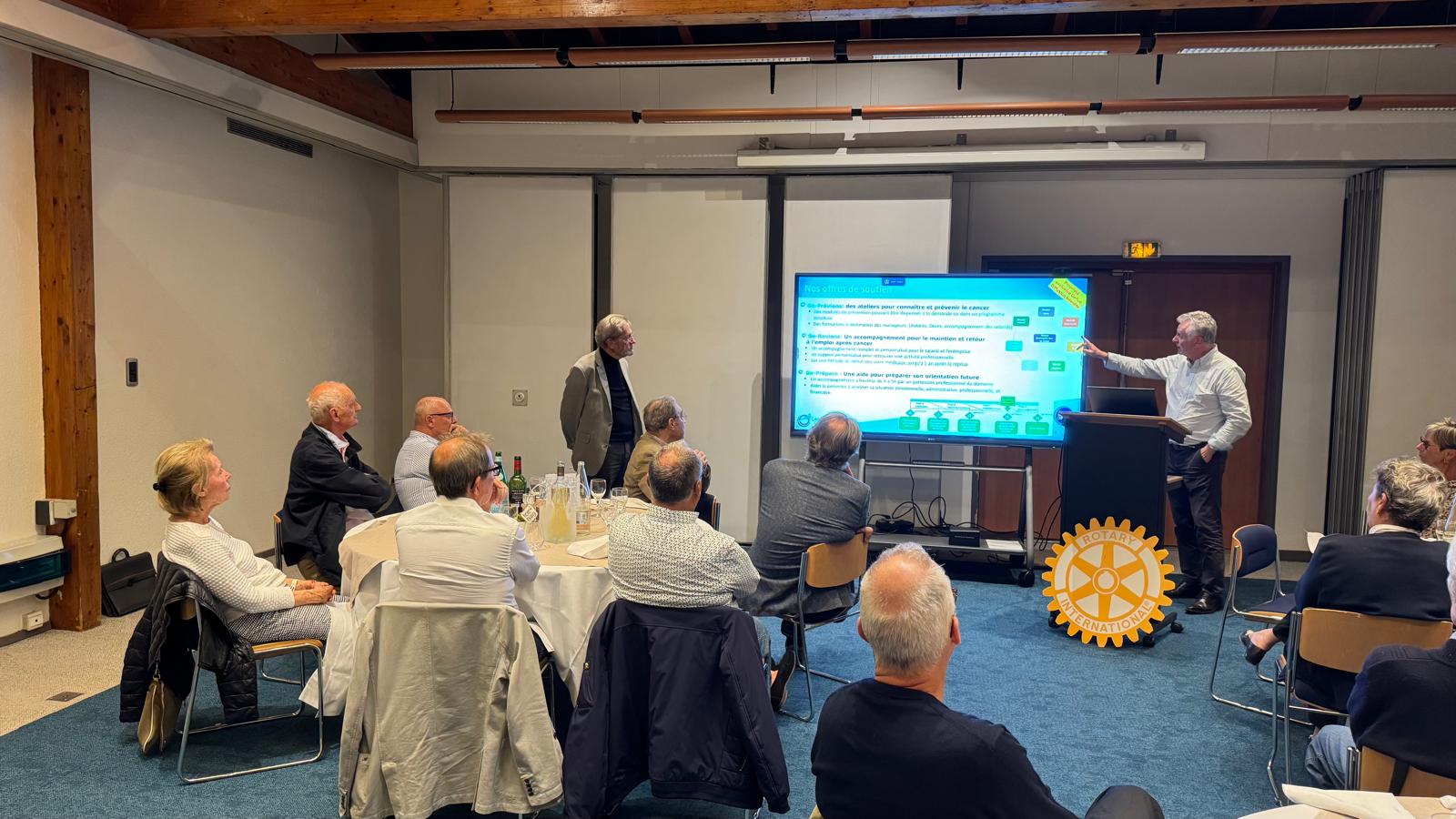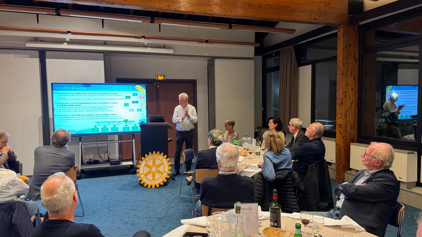 Notre club a accueilli Mr Jean-Pierre GILLET, membre du CA du GEFLUC, association qui accompagne la recherche et les entreprises dans la lutte contre le cancer, notamment par des actions de prévention ainsi que d'aide au maintien ou au retour dans l'emploi des salariés atteints par cette maladie.