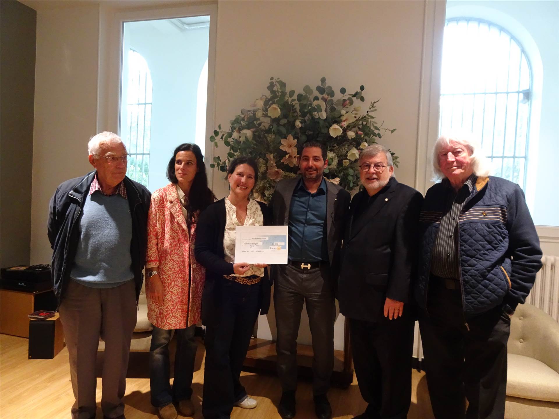 Remise du chèque grâce aux fonds récoltés lors de la soirée au Café Des Arts.